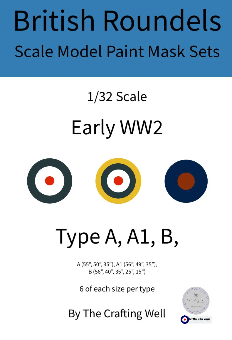 Scale Model Paint Mask Sets for Scale Models of British Aircraft used during WW2. Available in 1/24, 1/32 and 1/48 scale each set has British Roundels type A, A1 and B. Multipacks work out cheaper than buying each individual sets - Save £4.00 (normal price)